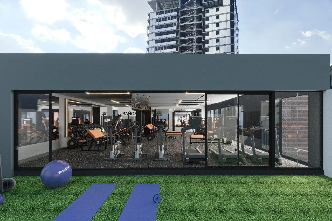 El gimnasio, diseñado por Radical Training, está equipado para ofrecer entrenamientos funcionales y de fuerza con estándares profesionales, agregando valor tanto a la experiencia como a la rentabilidad del desarrollo.
